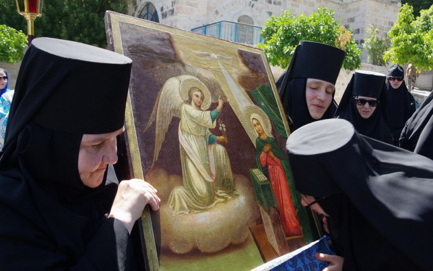 Я совсем не знала, по какому поводу меня вызывал Святейшей Патриарх Кирилл. Наша встреча происходила в патриаршей резиденции в Чистом переулке, где хранится икона «Умиление», перед которой молился преподобный Серафим. Пред этой иконой мы с сестрами решили пропеть Параклис Матери Божией. Во время чтения Евангелия после слов: «Во дни оны воставши Мариам иде в Горняя со тщанием, во град Иудов, и вниде в дом Захариин, и целова Елисавет…» (Лк.1:39), меня вызвали к Святейшему, где я и узнала о назначении в «Горняя» в Иерусалим.