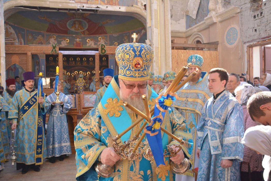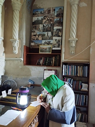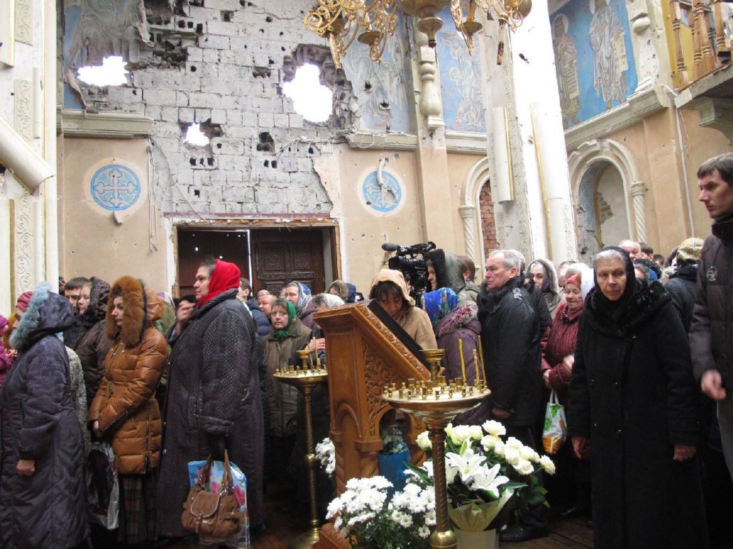 С весны 2015 года мы начали разбирать завалы, очищать от мусора храм, корпуса, приводить в порядок территорию монастыря. И уже в феврале 2016 года смогли отслужить первую Божественную литургию – первую после долгого перерыва. С того времени, несмотря на обострение боевых действий, Литургия служится в монастыре регулярно в воскресные и праздничные дни. Владыка Иларион очень сильно переживал за нас: май и июнь 2014 года мы жили еще в монастыре, а в середине июля, когда обстрелы усилились, владыка благословил всех насельниц переехать в епархиальное управление. Чуть позже он распределил сестер по другим монастырям, а я так и осталась жить в епархии и практически каждый день приезжаю сюда. Знаете, люди не боятся приходить на службы и помогать в хозяйственных делах, за что я им очень благодарна. Мы по-прежнему живем дружной семьей, только численностью она по понятным причинам стала меньше. Те, у кого дети, уехали в другие регионы или в более безопасные районы города. А с оставшимися по-прежнему собираемся, отмечаем праздники – Рождество Христово, Пасху, День Победы, именины (стараясь сохранить наши «довоенные традиции», устраиваем чаепития с вручением небольших подарков именинникам). Недавно на Рождество пели колядки, как и раньше, затем я (к сожалению, уже без сестер) поздравила прихожан и традиционно подарила им выпечку в форме барашка – агнца, напоминающего нам о великих событиях Рождественской ночи. Было и душевное чаепитие.