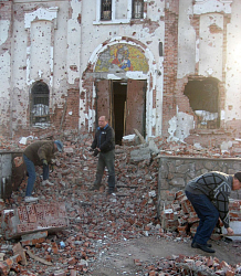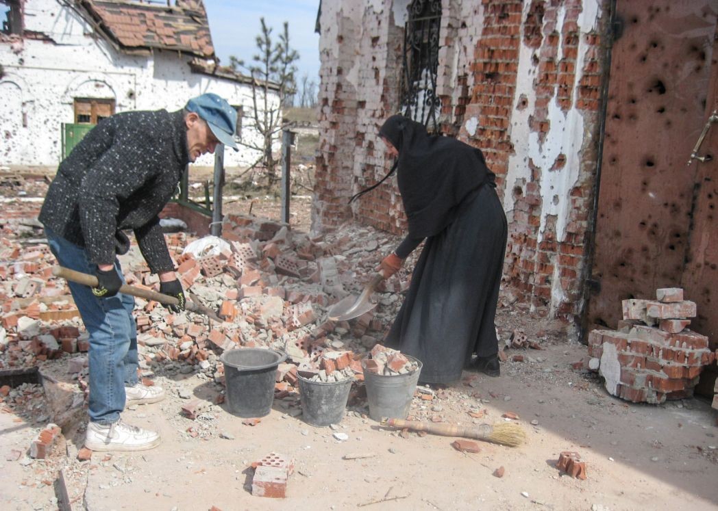 Самое главное чудо Божие – это то, что мы живы. Много раз мы попадали под артиллерийский огонь, но оставались живыми. Когда запылал наш Иверский храм, а обстрел продолжался, не теряя своего напора, мы всё же решились заняться спасением святынь и вынести из объятого огнем храма самое ценное. Помогали мне в этом наш прихожанин Андрей, садовник Виктор и охранник Игорь. С чтимым списком Иверской иконы Божией Матери, другими иконами, антиминсом, дарохранительницей, Евангелием, крестами, лампадами мы вместе выбирались из ада – и под защитой Пресвятой Богородицы добрались до безопасного места невредимыми. В том страшном для нас 2014 году Иверский храм сильно пострадал – выгорели кровля и второй этаж. Также выгорели крыша и третий этаж сестринского корпуса, и, как я уже говорила, огонь уничтожил построенную нами с большой любовью и большими надеждами воскресную школу. А в январе следующего года массированные обстрелы ВСУ возобновились, и все наши постройки, включая хозяйственные, практически полностью были уничтожены.