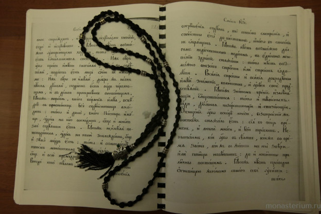 Чтение святоотеческой литературы в монастыре должно быть ежедневным. Как апостол Павел пишет в первом послании к Коринфянам: «И слово мое и проповедь моя не в убедительных словах человеческой мудрости, но в явлении духа и силы, чтобы вера ваша утверждалась не на мудрости человеческой, но на силе Божией. Мудрость же мы проповедуем между совершенными, но мудрость не века сего и не властей века сего преходящих, но проповедуем премудрость Божию, тайную, сокровенную...» (1 Кор. 2:4−7). Тогда только тайны богопознания открываются, когда человек глубоко погружается в писания святых отцов. Следует также сказать, что в наше время переписывание рукописей искусственно не возродить. Но, по совету старцев, я всем советую заниматься заучиванием Евангелия и поучений святых отцов. Вообще считается, что монашествующим обязательно надо знать наизусть пятую, шестую и седьмую главу Евангелия от апостола Матфея, где даны все заповеди Христа, знать близко к тексту «Душеполезные поучения аввы Дорофея», где можно найти ответ на любой вопрос. Господь сказал в Святом Евангелии: «Аще кто любит Мя, слово Мое соблюдет» (Ин. 14:23), и «Не любяй Мя словес Моих не соблюдает» (Ин. 14:24), и «Аще заповеди Моя соблюдете, пребудете в любви Моей» (Ин. 15:10). Для чего нам исполнять заповеди, – чтобы быть добренькими, хорошими? Надо четко осознавать, что исполнение заповедей Христовых – это не просто какая-то общая нравственная добродетель. Ими Господь открыл вход в Царствие Небесное еще здесь на земле. Спаситель говорил: «Аз есмь путь и истина и живот...» (Ин.14:6). Живот – по-русски значит жизнь. И вот этот путь к истине и к жизни в благодати, которая поселяется в нас, – то есть самую глубокую тайну в Евангелии – открывают нам святые отцы. Без чтения их творений мы будем ходить словно с повязкой на глазах, не зная, куда направиться. Даже если кто-то усердно молится и делает добрые дела, ум его останется без плода.