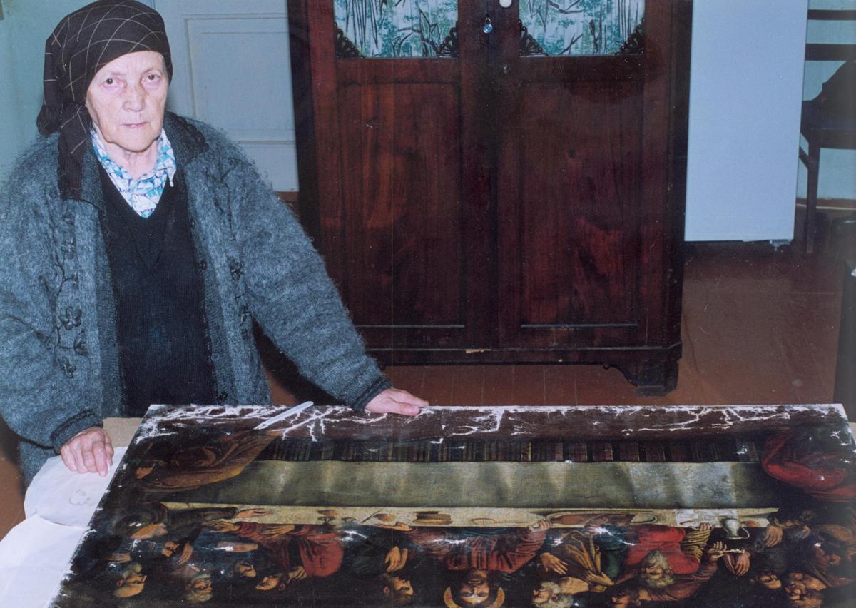 Преподобный Нил Столобенский своей подвижнической жизнью стяжал дар чудотворения. Немало чудес исцеления от физических и духовных немощей по молитвам к угоднику Божию совершается и в наши дни. Свидетельств тому много, люди пишут об этом братии мужского монастыря Нило-Столобенская пустынь, братия размещает их на сайте своей обители. Земное соединяется с Небесным. Что касается скульптуры святого, сделанной из ценного дерева, не могу не сказать, что попала она к нам в плачевном состоянии: на спине был варварски выбит, вырван большой кусок дерева. И только благодаря удивительному реставратору Екатерине Сергеевне Чураковой, вдохнувшей в скульптуру новую жизнь, мы смогли ее выставить в экспозиции. Вместе с другими «вылеченными» ею работами, среди которых притягивает взгляд экскурсантов икона конца XVII века «Монах, распинаемый страстями». Они находятся рядом – скульптура подвижника-чудотворца (это была последняя реставрация Екатерины Сергеевны) и известное изображение собирательного образа монаха, под ногами которого разверзлась преисподняя. А вверху на стене, над застекленными витринами – портрет самой Екатерины Сергеевны, посвятившей реставрации икон и картин собрания ЦАКа около 50 лет. Она была не просто самоотверженным художником-реставратором высочайшей квалификации – была человеком твердой веры, и каждая ее работа на благо Церкви помогала ей восходить по вертикали в Небо.