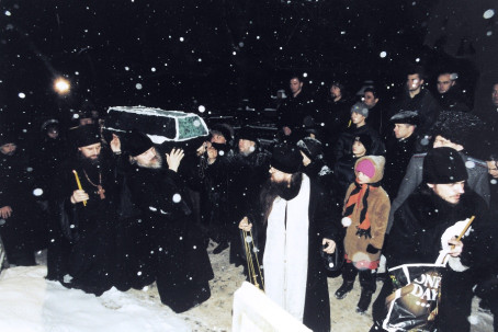 На следующий день мы начали сами делать первый иконостас в этом храме в приделе в честь преподобного Нила Столобенского. Святейший Патриарх Алексий II благословил совершить чин малого освящения этого придела и подписал антиминс. Приехали помогать мои родные – папа, брат о. Александр и другие братья, днем расчищали храм, делали иконостас, ночью я сама шила облачение для престола, завесы для алтаря. С Божией помощью, успели. 13 октября 1995 года левый придел в честь преподобного Нила Столобенского освятили малым иерейским чином, отслужили всенощное бдение, а в сам день Покрова, 14 октября, была совершена Божественная литургия и первый крестный ход вокруг храма. На душе в тот день была такая радость, что не передать.