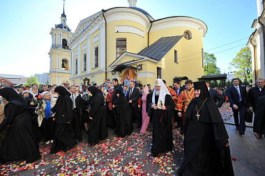 13 октября 1996 года в 17.00 Святейший Патриарх Московский и всея Руси Алексий II впервые отслужил молебен в Покровской обители. В присутствии телевидения и множества журналистов Первосвятитель обратился к властям и народу. Вскоре после этого вышло Постановление о передаче монастырю территории и храмов, и уже через месяц нам передали все здания, а в начале 1997 года – и землю. Однако арендаторы покинули здания только в 1998 году.