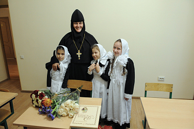 Дети учатся по программе общеобразовательной школы, в классах по пять-шесть человек, организован компьютерный кабинет, а на уроках труда им преподается швейное дело, вязание, домоводство. Музыкальному образованию уделяется особое внимание. Все воспитанницы умеют петь и играть на музыкальных инструментах (фортепиано, флейта, баян и др.). Мы организовали уроки русского танца, и девочки сами шьют народные костюмы. По праздникам для прихожан монастыря устраиваются концерты и спектакли, где все роли исполняются монастырскими детьми. Девочки сами пишут сценарии, стихи и музыку для песен. До 15:00 дети учатся, вторая половина дня – свободное время: читают, вышивают, музицируют.