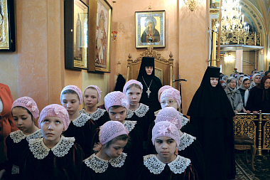 Часто на богослужениях в храмах обители рядом с монахинями можно видеть маленьких девочек в нарядных белых передниках и белых платочках. Это воспитанницы монастырского приюта?
