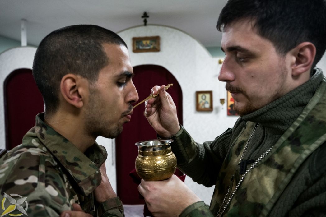 Отец Михаил (Оптина пустынь): А вот эпизод немного даже комичный. Это было под селом Никольское, что на Угледарском направлении. Мы пришли к ребятам на пункт их дислокации – в тот теплый день бойцы сидели и грелись на солнышке. Хотели мы крещеных бойцов поисповедовать и причастить, но они как-то вяло отреагировали. Тогда спросили у них: «Окропить всё святой водой? – «Да, окропите». Мы окропили, затем спустились в подвал, служивший им укрытием во время бомбежек, и его окропили. В подвале находился мусульманин. Как мы узнали, родом он из Дагестана, где столько этносов живет: аварцы, даргинцы, лакцы, лезгины, табасаранцы, и так далее! В общем Дагестан – многонациональный регион, где люди отлично друг с другом уживаются. Выяснилось, что в мирной жизни этот человек был учителем истории. Невольно разговорились с ним, и он сообщил, что именно по тому времени, когда Украину начали «лепить», он дипломную работу писал и много чего знает. Потом мы вместе поднялись из подвала. И вот, представьте, мусульманин (он был постарше, чем другие) говорит ребятам: «Что вы тут расселись? К вам ваши священники пришли, так что давайте исповедуйтесь и причащайтесь!» Комично, с одной стороны: мусульманин вдохновляет православных причащаться, но, с другой стороны, это ведь яркое свидетельство того, насколько велико уважение у представителя другой конфессии к Православию!