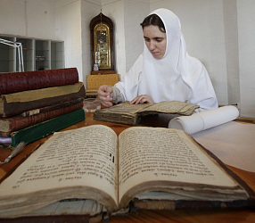 Касательно вашего вопроса о тех послушаниях, которые сестры несут в нашем монастыре, скажу, что навыки и умения каждой нельзя не учитывать. Музыкально одаренные сестры поют и регентуют. Прошедшие обучение иконописи, лицевому, золотому шитью и швейному делу трудятся в соответствующих мастерских: иконописной, реставрационной и мастерской лицевого и золотного шитья. Нельзя не сказать, что традиции лицевого золотного шитья были заложены в обители ее первоначальницей – преподобной Еленой (Девочкиной) и передавались монахинями из поколения в поколение.