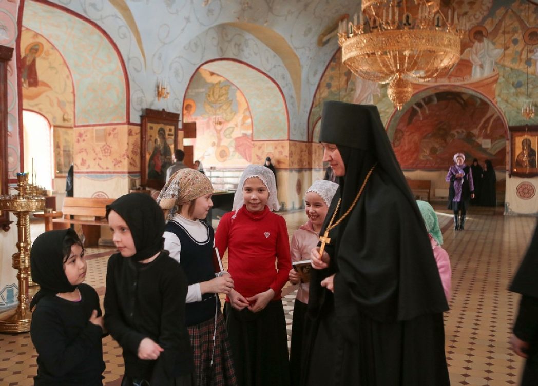 Наша Александровская православная гимназия для девочек открылась в 2014 году – по молитвам и трудами архимандрита Петра, который окормлял ее до самой своей кончины в 2016 году. Школа находится на дополнительной территории, за основной монастырской. Наша монашеская жизнь и учебная детей не пересекаются, у них есть свои воспитатели, к нам они ходят на богослужения и на послушания. Это девочки из полноценных семей, не брошенные, на каникулы они уезжают домой, родители их навещают. Просто семьи либо многодетные, либо родители хотят, чтобы у них дети росли в православной среде, а сами не могут этого обеспечить. Конечно, мы с девочками общаемся, хотели бы, может быть, чаще их видеть, но у них самих не получается из-за большой учебной нагрузки. Но учеба им нравится.