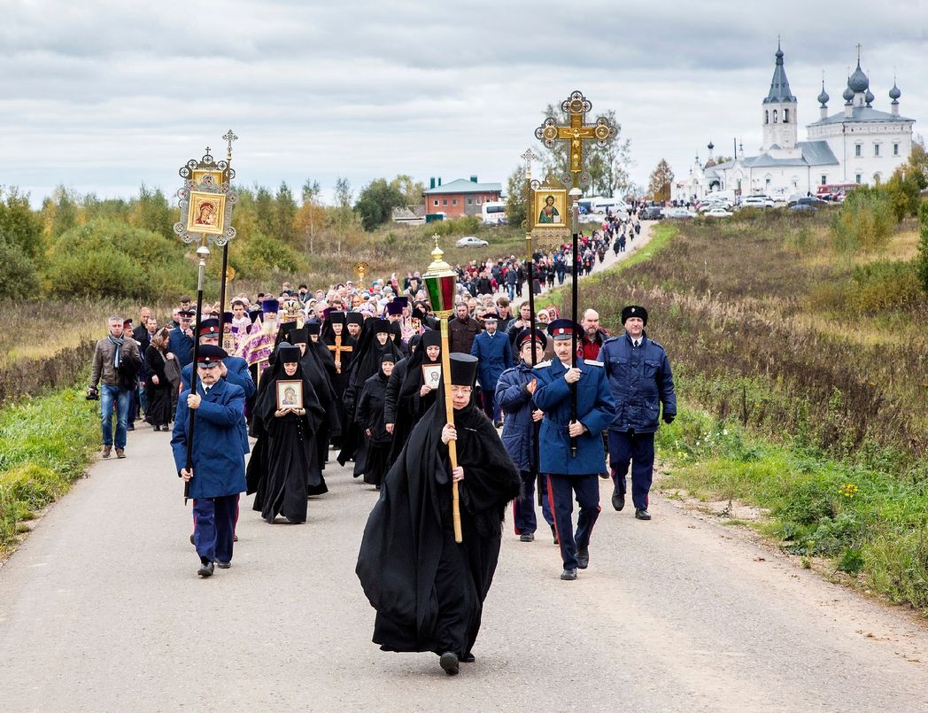 Еще недавно к этой великой российской святыне вела едва заметная тропка. Всего-то ничего – какие-то четверть века назад такое было! Настоятельница возрождающегося Никольского монастыря, что в Переславле-Залесском, вместе с сестрами обители искала место для монастырского подворья. Хотелось там всякую живность завести, огород разбить. А Господь управил по-другому. Заехавшие в монастырь москвичи сообщили, что в Ростовском районе Ярославской области недалеко от трассы, в лесу, находится небоявленный чудотворный Крест Господень. Матушка с сестрами отправилась туда, в село Годеново. Они вошли в полуразрушенный каменный храм святителя Иоанна Златоуста, увидели пострадавшую от кощунственных надругательств богоборцев, от жука-точильщика святыню (как позже выяснилось, XV века), и вскоре после этого открылась еще одна замечательная страница и в истории древнего монастыря, и в истории верующей России. Монастырское подворье в Годеново стало за эти годы местом притяжения громадного числа богомольцев, паломников, а также своего рода миссионерским центром.