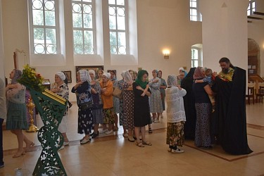 Нужно было постепенно менять ситуацию, но не потерять прихожан. Мне было важно объединить людей не только во время богослужения, но и после него. Хотелось создать дружный монастырский приход. Именно поэтому на первом этаже переданного нам здания мы открыли библиотеку, и в ней стали проводить встречи со священниками епархии, литературные лекции и другие мероприятия. При монастыре открылся Центр защиты материнства и детства «Дар жизни», действовала (и по сей день действует) воскресная школа для детей из детского дома, а потом – и для детей прихожан. Создали народный хор, который стал петь на ранней Литургии. Параллельно мы пытались заниматься реставрацией Вознесенского храма, и в 2017 году удалось совершить в нем первое богослужение, хотя служили без иконостаса. Служба в большом храме так нас вдохновила, что буквально за несколько месяцев удалось собственными силами воздвигнуть временный иконостас, и богослужения стали совершаться в Вознесенском соборе. По благословению митрополита Владимирского Евлогия и епископа Нижнетагильского Иннокентия я съездила в Муром, чтобы привезти частицы мощей святых Петра и Февронии, покровителей и семьи, и монашествующих. Были написаны новые иконы: Божией Матери «Всех скорбящих Радость» и святых благоверных князя Петра и княгини Февронии. Вообще идея привезти их мощи и написать их образ у меня созрела при мыслях о воспитанниках детского дома. Подумалось: ребята смогут обращаться к святым чудотворцам с просьбой о возвращении в семью – родную или приемную.