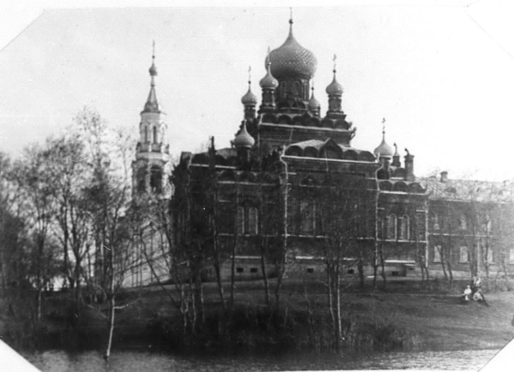 История обители насчитывает чуть больше полутора веков – закладка ее состоялась в 1860 году. Правда, первые насельницы отнюдь не сразу обосновались в Рыбинске. Еще в 1840-х годах девицы, желавшие богоугодной жизни, образовали общину в окрестностях Пошехонья, под окормлением старца иеромонаха Адриана. Потом сестринское общежитие перебралось за своим духовником в Мологу. А перед кончиной отец Адриан передал их иерею Петру, заштатному священнику Иерусалимской слободы, что в двух верстах от Углича. Юродствующий подвижник, в свое время претерпевший в подвиге много злоключений, уже славился тогда в народе как благодатный прозорливец. Сестрам пришлось выдержать еще пять лет «кочевой» жизни вне монастырских стен, пока старец не выбрал им и игумению (Антонию (Мезенцеву), бывшую на тот момент настоятельницей монастыря в Кашине), и место для строительства. Нашелся и главный благодетель – купец Андрей Иванович Миклютин, в буквальном смысле положивший в дальнейшем жизнь и состояние на благоукрашение обители. Помощь от других представителей местного купечества тоже была значительной: монастырь, не получая содержания из казны, существовал на проценты от пожертвованных капиталов. В результате с 1860 по 1864 год он был практически целиком отстроен, возведены два храма. Все последующие игумении счастливо сочетали духовные устремления с экономическими способностями и прекрасно управлялись с монастырскими землями, подсобными хозяйствами (скотный двор, конюшня), производством (хлебозавод и кирпичный завод). Были построены еще два храма. Сестры славились мастерством шитья и вышивки. Перед 1917 годом их было около двухсот в монашеском постриге, не считая послушниц и трудниц, и нередко из числа этих не только благочестивых, но и хорошо образованных насельниц выходили достойные игумении для новых обителей.
