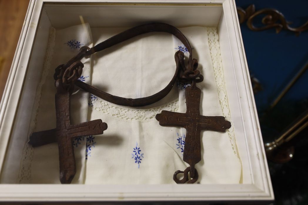Мы поднимаемся с матушкой Серафимой на второй этаж, в храм, маленький, в голубом Богородичном убранстве, и тоже по-домашнему уютный, теплый, где, несмотря на проведенное отопление, до сих пор есть действующая печка – «на экстренный случай». Чувствуется, что практически на каждой иконе, на каждой детали здесь лежит отсвет особенной заботы, со всем связана какая-то индивидуальная история. Вот большая икона святителя Иоанна Шанхайского – дар московского прихода церкви Покрова на Лыщиковой горе специально Софийскому монастырю, – сначала какими-то путями попавшая в городской кафедральный собор.