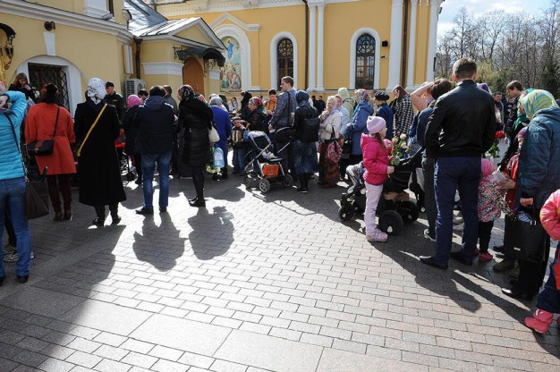 Если погода хорошая, люди проводят на территории монастыря целый день – у нас везде лавочки стоят, есть монастырская трапезная, детская площадка. Кроме того, на праздники Матронушки мы открыты всю ночь: с 7 на 8 марта, с 1 на 2 мая, с 21 на 22 ноября, а также на главный престольный праздник – Покров Пресвятой Богородицы, с 13 на 14 октября мы не закрываем ворота обители. Паломники могут приложиться к мощам, причаститься на ранней литургии, которая служится ночью, в 00.00. А позднюю литургию обычно возглавляет Святейший Патриарх Московский и всея Руси КИРИЛЛ или один из викариев Святейшего Патриарха.