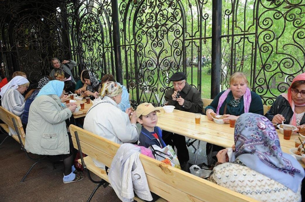 Мы каждый раз организуем благотворительную трапезу для всех прихожан: полевая кухня, чай с булочкой, на 20 тысяч человек, и к 16 часам обычно всё уже заканчивается.