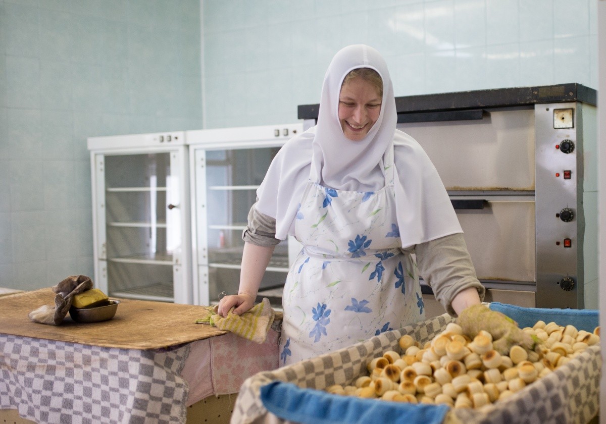 – Первые три года я жила в скиту у источника преподобного Серафима. Приехала туда неумелым подростком. Корову, к примеру, только у бабушки в деревне пару раз по голове погладила (смеется). Меня привели на кухню: «Будешь готовить обед». А готовить я не умела совершенно, даже картошку чистить. И вот, стою я в маленькой кухоньке, передо мной печка, дрова, ведро с картошкой. Я чуть ли не в слезы: «Батюшка Серафим, помоги!» На часах 9.00 утра, а обед в 11.00, на все про все у меня только два часа! Не зная, как растопить печку, я начала запихивать в нее дрова, вылила сверху бутыль растительного масла (чтобы лучше разгорались, как я где-то вычитала) и … ничего. И спросить-то не у кого, все на послушаниях. В общем, перевернула все на кухне вверх дном, но обед с горем пополам приготовила-таки.