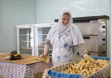 Игумения Сергия называет просфорное послушание самым монашеским. Его можно сравнить с клиросным, потому что и тут и там должно быть согласие между сестрами. Поэтому в просфорне важно не только быстро работать, но и ощущать себя единой командой, особенно на разделке.