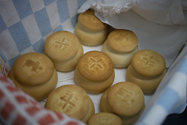 Через полчаса инокиня Иулиания достает противни из печки. Как же благоухают свежеиспеченные просфоры! Иногда не все из них получаются идеальными (гладкими, без пузырей и трещинок, с четким рисунком), но их чудесного вкуса это не меняет. Пока инокиня укладывает лучшие экземпляры в лари, «укутывая» их махровыми полотенцами и клеенкой, мы с радостью угощаемся «браком».