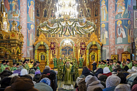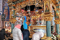 Направляемся к храму, спускаемся в холодильник. Инокиня Иулиания раскладывает пакеты с просфорами по полкам. В Троицком соборе не только утром, но и днем (в 13.00 и 14.00) служится акафист у мощей преподобного Серафима. Сегодня наша героиня как раз поет на дневном акафисте. Поэтому спешим из холодильника в теплый собор, где, несмотря на будний день, много молящихся.