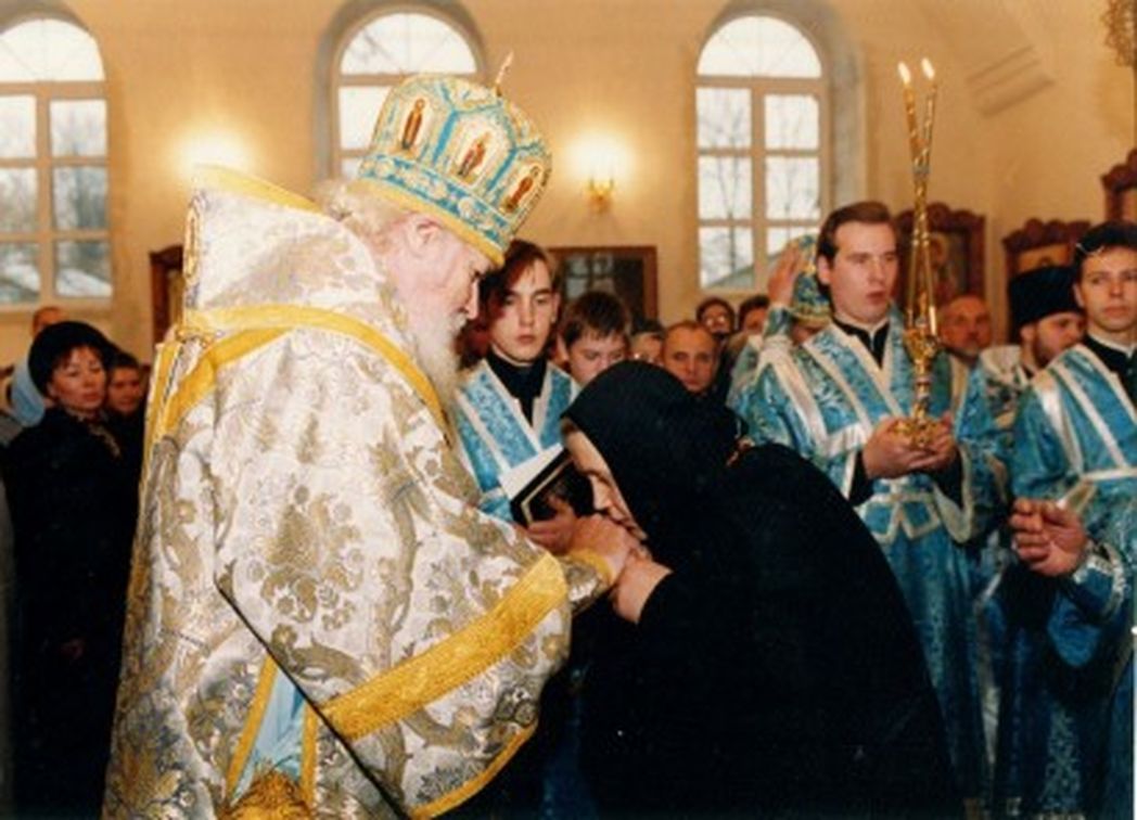 Конечно, поначалу я переживала, потому что некоторые сестры по возрасту мне в бабушки годились. Волновал вопрос: как мне, молодой инокине, с ними себя вести? Но после того, как Святейший Патриарх Алексий II возложил на меня руки, возводя в сан игумении, я почувствовала: не важно, сколько кому лет, все они – мои дети. В силу того, что Господь поставил меня на этот путь, я вынуждена о них заботиться, терпеть какие-то их недостатки, воспитывать сестер и, по мере возможности, приводить их к Богу. Да, у меня есть ощущение, что я для них мать. А уж что они думают, не знаю... Мне, наверное, нужно быть построже – не столь покладистой. Я многое им прощаю, многое разрешаю, потому, что прежде всего эту «одежку» примеряю на себя: как бы мне было в этом состоянии? Хорошо или плохо? И я никогда никого не заманиваю в монастырь. Желающим поступить сюда говорю: «Вы поживите, посмотрите, приглядитесь. У вас есть право выбора: останетесь вы с нами или, возможно, пойдете куда-то в другое место. Если вы хотите, чтобы ваша жизнь в монастыре была во спасение, значит, вы готовы претерпеть тесноту, обиду, скорбь, напраслину». То есть человек должен учиться терпеть, он должен учиться смиряться. Если к этому готов, значит, правильный адрес выбрал. Не готов – у Бога путей много. Выбирай другой! Сегодня у нас около 20 насельниц. Молодых мало, большинство в возрасте. Я иногда думаю: может, я сама еще не готова воспитывать молодых? Молюсь, прошу Господа: «Господи, пошли сюда тех людей, которых ты хочешь в этом монастыре видеть, и кто хочет здесь спасаться». Надо сказать, что монастырь развивался трудно. Были сложные отношения с находящимся по соседству Российским реабилитационным центром «Детство», директор которого нередко – особенно зимой! – отключал теплоснабжение. Инженерная сеть-то у нас была совместная! Сестры включали обогреватель, он отключал электричество. И куда деваться? Поэтому когда Святейший Патриарх Алексий II спросил меня, с чего я хочу начать, я сказала: с теплотрассы. Запомнились такие его слова: «Монастырь Кресто-Воздвиженский, легко не будет. Но я помогу». И помогал – советом, деньгами – всем, чем мог. Святейший направил сюда людей: по его благословению они помогли нам решить вопросы с теплотрассой, водопроводом. И с реставрацией храмов. Это были богатые, состоятельные люди, которые накануне 40-летия архиерейской хиротонии Патриарха высказали пожелание сделать ему дорогой подарок: машину, самолет или поезд с личным вагоном. А он ответил: «Мне это не надо. Это все нужно содержать. Вы помогите матушке Екатерине с теплотрассой». После строительства теплотрассы те люди спросили: «Можно, мы еще что-то для монастыря сделаем?» Я позвонила Святейшему, он сказал: «Если они помогут тебе в других вопросах, я буду благодарен. Просто нескромно с моей стороны было просить их о чем-то еще». Их мощная и своевременная помощь дала новую жизнь нашей обители... А Святейший Патриарх Алексий неустанно заботился и о ее духовной составляющей. Не оставлял нас без своего попечения. Часто звонил, спрашивал: «Как живете? Сколько людей было на службе?» Его интересовало абсолютно всё. Это был и добрый отец, и мудрый наставник.