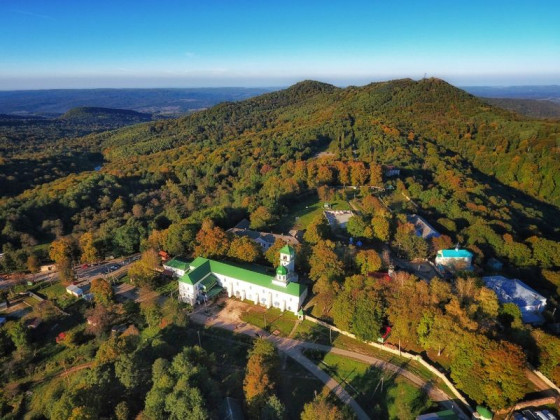 Наш монастырь расположен на горе, на высоте 920 метров над уровнем моря, и фактически является одним из самых высокогорных исторических монастырей, действующих в России. С вершины открывается замечательный вид на северо-запад Кавказского хребта. Но афонских братьев, вероятно, привлекала не внешняя красота, а уединенность места и отчасти его сходство со Святой Горой.
