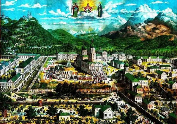 Монастырь имеет уникальную историю, потому что первая братия пришла в 1877 году на совершенно пустое, необжитое, труднодоступное место. Но через двадцать лет появился, можно сказать «из ничего», целый монастырский комплекс, который включал в себя пять храмов. Самый большой храм в честь Успения Божией Матери мог вместить до 3000 человек, второй по величине Троицкий трапезный храм вмещал до 1000 человек, и было еще три храма: Архистратига Божия Михаила, Преображения Господня (на 600 человек), храм преподобного Александра, игумена обители Неусыпающих. Строился и храм в честь всех Афонских святых, причем он строился на месте, где тоже сохранились остатки древнехристианского храма, – это свидетельствует о расцвете здесь христианской культуры еще во времена Византийской империи, до Крещения Святой Руси. Фактически Кавказ в нашей стране и есть колыбель христианства.
