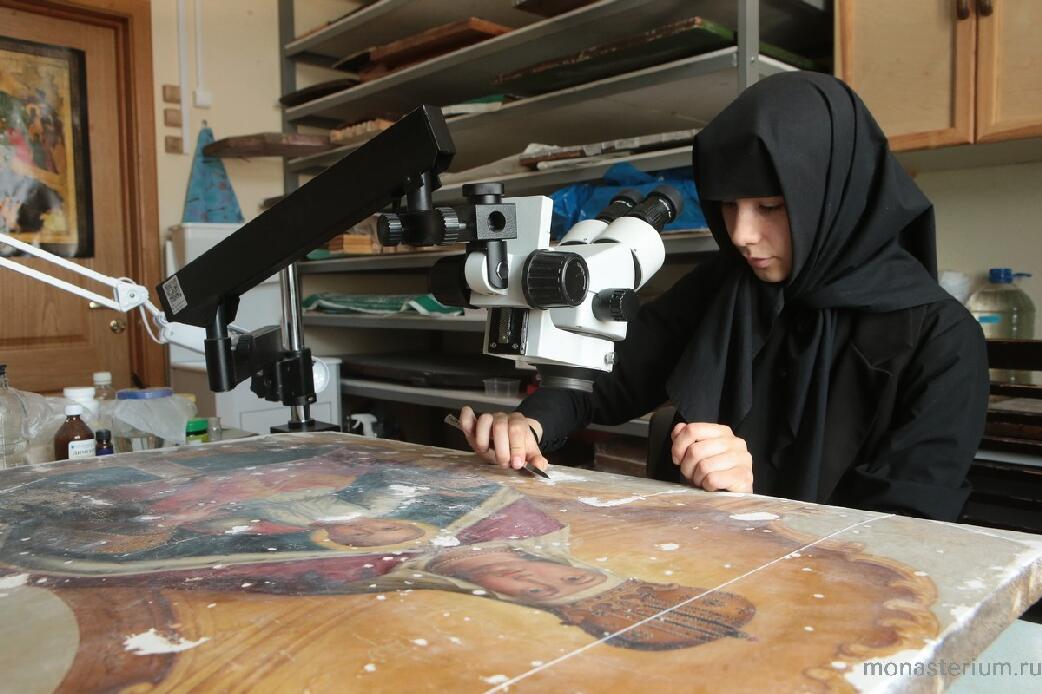 В то же время у вас – скажем так – большая концентрация послушаний, требующих профессиональных знаний и навыков. Например, преподавание сестрами в школе для девочек-воспитанниц детского центра, преподавание на упомянутых Богословских курсах в Свято-Екатерининской обители. Или столь непростые трудоемкие дела как реставрация старых икон, книг, занятие мозаикой.