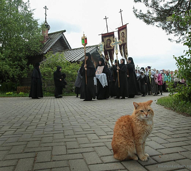 Нет. Да и в самой Твери не бывала. А как все получилось: 26 лет назад в Тверскую область приехала к своим друзьям будущая первая игумения нашего вновь открытого монастыря, матушка Иулиания (в то время – Кирси Ритониеми, в крещении Кира). По рождению финка, по вероисповеданию лютеранка, она во время учебы в МГУ приняла Православие и все каникулы проводила в Ново-Голутвине монастыре, считаясь там уже «сестрой № 38». Кира прочно вошла в монастырскую жизнь, выполняла разные послушания и после окончания университета решительно настроилась на поступление в эту обитель. Но поехала перед этим навестить своих друзей в село Васильевское под Тверью – дочь и зятя-священника одной удивительной московской четы – своей крестной, Светланы Викторовны, и Алексея Ивановича Сидоровых (замечу, что Алексея Ивановича высоко ценят студенты и тепло вспоминают выпускники Московской Духовной академии, где он преподает – комментарий авт.). Они тогда во многом поспособствовали открытию наших монастырей. В тот день на приходе в Васильевском оказался еще один удивительный человек, теперь уже покойный – протоиерей Николай Васечко. У него была такая «харизма» – открывать монастыри и храмы. Он ничего не боялся. Как-то пришел отец Николай с известным тверским краеведом Борисом Николаевичем Ротермелем в областную инспекцию по охране памятников и наткнулся на рериховцев. Те хотели забрать себе во владение тогда еще закрытый Оршин монастырь. Дескать, Епархия в нем не заинтересована. «Считайте, что с этой минуты Епархия заинтересована!», – сказал батюшка и «спустил их с лестницы». А сам быстренько приехал на Оршу, собрал двадцатку из тех оршинских бабушек, которые еще были живы, и буквально за три дня открыл приход. Председатель колхоза «Красная нива» Сергей Владимирович Миронов, в то время еще коммунист, ставший за эти годы глубоко верующим человеком и нашим прихожанином, помог настелить полы в полуразрушенном храме, что-то подновил и уже можно было служить. Отец Николай подумал: если найду игумена, будет мужской монастырь (с давних веков до 1903 года он и был мужским). Если игумению – женский. У него было поразительное чутье на людей! Приехав в гости, где была наша Кира, увидел ее в храме на клиросе, и как-то всё про нее понял. Спросил о ее планах. Она ответила, что хочет поступить в обитель в Коломне. «Нет, поступаешь в Оршин монастырь», – твердо произнес он. Все решили, что это шутка. А батюшка не шутил: собрал гостей и хозяев и повез их на катере к монастырю. Кира, хотя всерьез эти слова не восприняла, вскоре отправилась к отцу Науму, чтобы все ему рассказать. А старец очень обрадовался, неожиданно для нас всех, и сказал ей: «Может, для тебя лично лучше было бы подвизаться в Коломне, но для пользы народа надо ехать в Тверь». И добавил: «Если только настоятельницей поедешь». Она спросила: «Как же я буду одна? Можно мне Катю забрать?». И еще одну сестру из Коломны назвала, Любу Лобанову – нынешнюю настоятельницу Христорождественского монастыря в Твери игумению Ларису, – батюшка благословил.