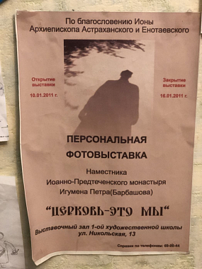 ***Атмосфера в монашеской семье, взаимоотношения игумена с братией – эту тему можно рассматривать в разных аспектах. А можно, наверное, привести один пример, пусть и более чем десятилетней давности, но в полной мере показывающий, каково отношение братии к своему духовному руководителю. Зная его увлечение фотографией со школьных лет, когда он, мальчишка, с упоением всё вокруг фотографировал, затем проявлял пленку по ночам в темной комнате при свете красной лампы и печатал снимки, братия на десятилетие его служения на посту наместника подарила ему... объявление о его персональной фотовыставке. С указанием места, времени и названия выставки: «Церковь – это мы». Вообще-то отец Петр о фотовыставке никогда не помышлял, он вовсе не хотел выставляться! Но поскольку это был трогательный знак внимания братии, игумен «сдался» и стал отбирать снимки из своего большого фотоархива. Сначала 150 фотографий отобрал, оказалось – много. Чтобы уместить всё в экспозицию, сократил их количество вдвое. Об этом отец-наместник поведал губернатору Астраханской области, посетившему фотовыставку. Проходила она в выставочном зале Детской художественной школы и в областной научной библиотеке. Некоторые снимки отца Петра представлены в данном интервью. Другие взяты из архива монастыря и открытого доступа.