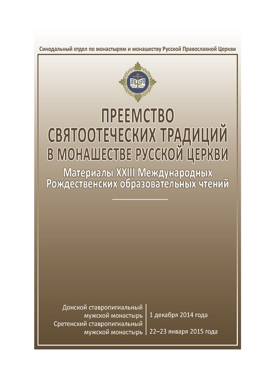 Сборник содержит материалы докладов, прозвучавших в рамках работы направления «Преемство святоотеческих традиций в монашестве Русской Церкви» ХХIII Международных Рождественских образовательных чтений.