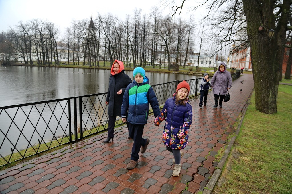 Для учащихся 2-х классов московской специальной (коррекционной) школы-интерната № 108 путешествие в Николо-Угрешский монастырь – первое в их жизни. Многие из них впервые переступили порог храма. Насельник обители Филарет (Иглицкий) окропил в храме святой водой директора специальной школы-интерната № 108 Галину Павловну Бажанову и ее подопечных.