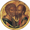 Святой апостол Петр (назывался он также Кифою или Симоном) происходил из небольшого городка Вифсаиды и по занятию был рыбарь. После призвания своего он следовал за Господом неотступно и за свою любовь к Спасителю удостоился стать избранным учеником Его вместе с Иаковом и Иоанном Богословом. Именно им троим довелось быть свидетелями многих тайн судеб Божественных. Верным Господу святой апостол Петр оставался до конца своей жизни. Правда, в стесненных обстоятельствах апостол по малодушию отрекся от Господа во дворе первосвященника, но это свое отречение он омыл горячими слезами покаяния и после Воскресения Христова по троекратном вопрошении его Господом: любишь ли Меня? (Ин. 21:15) – был восстановлен в апостольском звании и служении. Первоначально апостол Петр проповедовал Евангелие преимущественно среди иудеев в Иерусалиме; затем он проповедовал в Самарии, Сирии, Асии, Вифинии, Понте, Галатии и, наконец, пришел в Рим, где и был заключен в темницу. Свою преданность и верность Господу он запечатлел мученической кончиной: был распят на кресте вниз головой в 67-м году от Рождества Христова. Церковное предание гласит, что, когда император Нерон воздвиг гонение на христиан в Риме, римские христиане просили апостола Петра укрыться и выйти из города. Когда же Апостол, преклонившись на их просьбы, пошел, то, подойдя уже к окраине города, увидел грядущего ему навстречу Спасителя и в трепете вопросил Его: «Куда Ты, Господи, идешь?» Господь же отвечал ему: «Иду, чтобы вторично быть распятым». Из этих слов Господа святой апостол Петр уразумел, что наступил для него час прославить Господа своей смертью. Он вернулся в город и был осужден императором Нероном на распятие. Считая себя недостойным того, чтобы принять такую же смерть, как Господь, апостол Петр просил, чтобы его распяли вниз головою, что и было исполнено: 29 июня он вместе с чествуемым ныне же святым апостолом Павлом был предан мученической смерти.