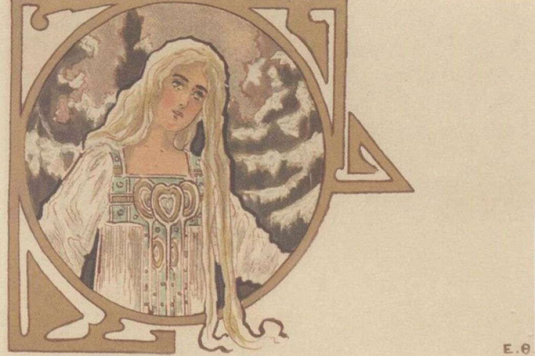 Вот открытка с изображением Снегурочки 1902 года, выполненная в стиле популярного тогда модерна, который не просто оказал влияние на полиграфическую продукцию – афиши, открытки и прочее, но и во многом сформировал подход к трактовке образцов этой продукции как самоценных произведений искусства. Снегурочка на рисунке Елизаветы Феодоровны изображена в стилизованном одеянии с орнаментальной отделкой, на фоне елей. Рисунок заключен в декоративную асимметричную рамку. Длинные пряди волос Снегурочки, опускаясь за рамку, становятся частью орнамента... Вообще в этой небольшой композиции все работает на главную задачу: такую открытку хочется купить не просто из благих побуждений, – она придется по душе истинным ценителям живописи.