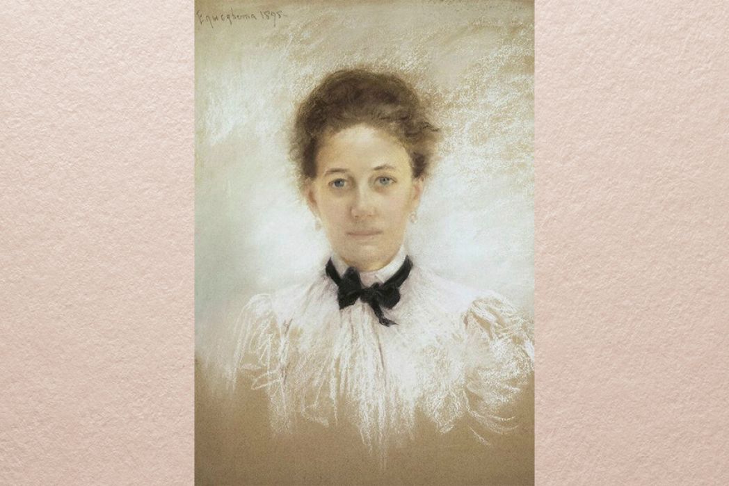 А вот портрет фрейлины Великой княгини – Е.Н. Козляниновой, 1898 года, который хранится в Государственном Эрмитаже. (Его еще обозначают как «Портрет неизвестной», в данном случае мы опираемся на атрибуцию И. К. Кучмаевой и Л. Б. Максимовой) [3] Изображение словно выступает из листа бумаги, проявляется. Белая блузка героини не то что перекликается с белым фоном, а словно ткется вместе с ним, набирая на наших глазах плотность и объем. Цветовой акцент – темный бант на блузе, но внимание – вновь на лицо. Импрессионистичная манера исполнения придает портрету мягкость и живую непосредственность.