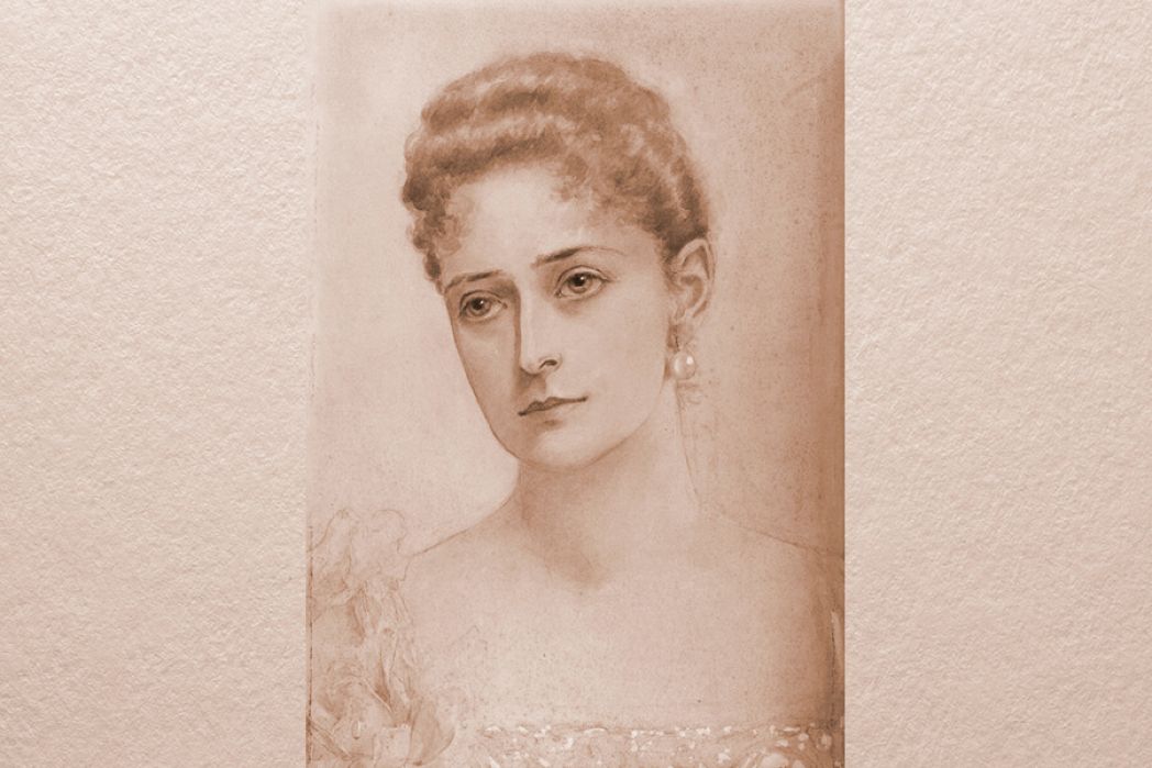 В 1897 году Елизавета Феодоровна написала портрет своей сестры – Императрицы Александры. Здесь мы видим характерное для эпохи Серебряного века стремление сделать акцент на лице героя, а остальное показать лишь намеком. Рисунок портретно правдив, при этом, точно передавая черты внешности Императрицы, художник дает нам ее душевную характеристику – прекрасного, тонкого и внутренне сосредоточенного человека. Обозначенные кружева платья подчеркивают общий трепетный образ.