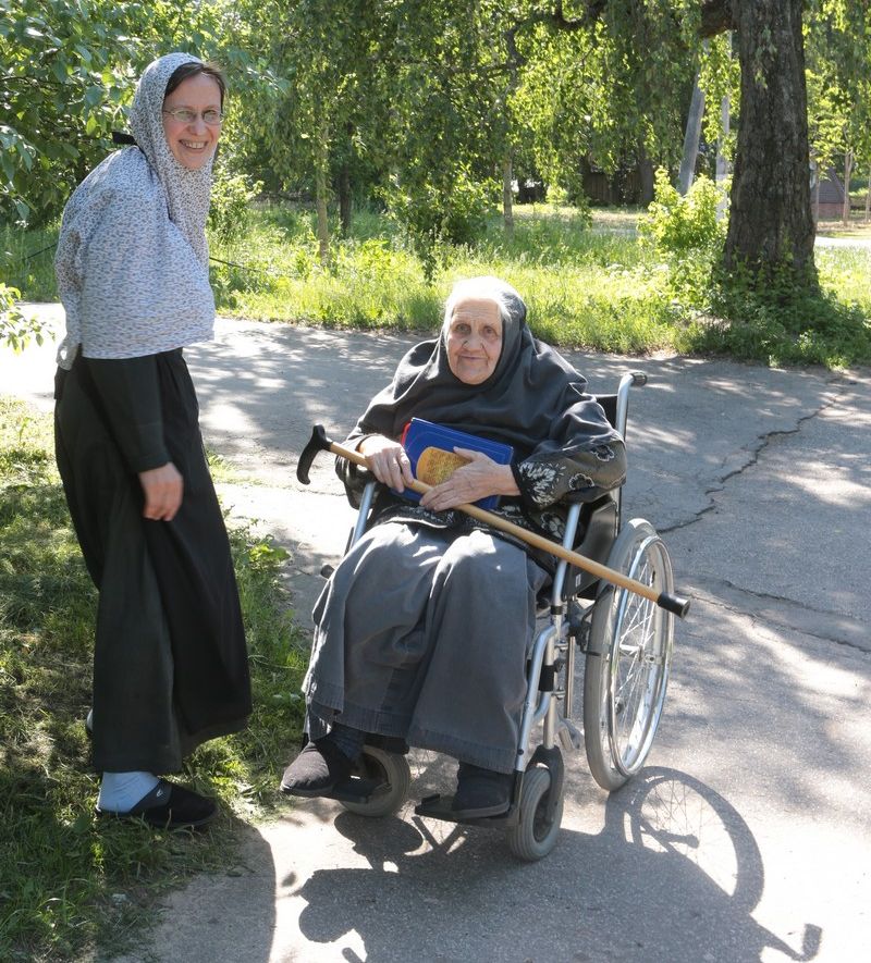 Сейчас лежачих сестер, прикованных тяжелой болезнью к постели, в богадельне нет. По словам монахини Феогносты, Великий пост «подобрал». Остальные, кто лучше, кто хуже, но двигаются. Один из излюбленных ими летних маршрутов, помимо храма, – к красивой беседке, расположенной неподалеку от богадельни. Или к лавочкам, где можно удобно устроиться и наслаждаться красотой природы, которая радует глаз и возвышает душу. Некоторые даже землянику собирают, ее в сезон на территории обители бывает много. Долгожитель-монахиня Тихона (Угрюмова), о которой все вспоминали как о человеке со светлой памятью и светлым разумом, тоже любовалась родной природой, да только долгим ее созерцанием не могла заниматься. Руки постоянно тянулись к куску материи: мать Тихона начинала по привычке кроить, однако сил сшить фартук или апостольник у нее в последние годы не хватало. И тогда она просила келейницу: «Валентинушка, ты уж доделай!» У келейницы было такое чувство, что где-то последние шесть месяцев до свой кончины мать Тихона уже жила в ином мире. Готовилась к переходу в вечность. Она словно наяву видела свою маму. Видела зримо и других дорогих сердцу людей, давно почивших. Чистая душой, монахиня Тихона напоминала искреннего ребенка.