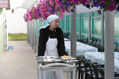 В первый свой приезд, получив послушание трапезника, Юля трудилась в монастыре четыре месяца. Потом уехала домой, но, спустя время, снова вернулась. Потому что, сказала она, почувствовала какую-то недосказанность. Хотя раны уже не надо было залечивать – они удивительно быстро затянулись, и в душе воцарились мир и спокойствие, но хотелось глубже постичь духовный мир. И она поняла, что это воля Божия. Приняла ее с радостью. А с послушанием трапезника, Юля, что называется, сроднилась. Сейчас работает с группами паломников: кто-то приезжает на один день и обедает здесь, другие останавливаются в монастырской гостинице на ночь, так что их надо накормить ужином и на следующий день после службы в храме – обедом. И не только вкусно накормить, но и создать такую атмосферу, чтобы паломники почувствовали: в монастыре им рады.