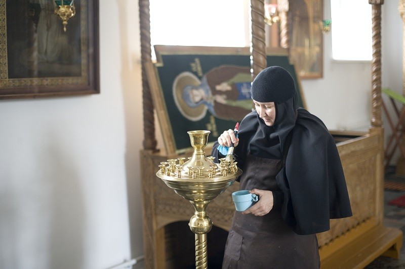 Основные послушания такие же, как и в других монастырях – клиросное, церковное, швейное, вышивальное, иконописное, поварня, трапезная, подсобное хозяйство, просфорня, выпечка хлеба, сад, огород и другие.