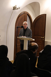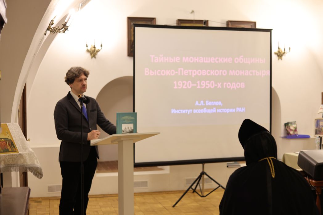 После презентации Алексей Львович Беглов, доктор исторических наук, главный научный сотрудник Института всеобщей истории РАН выступил с докладом «Тайные монашеские общины Высоко-Петровского монастыря».