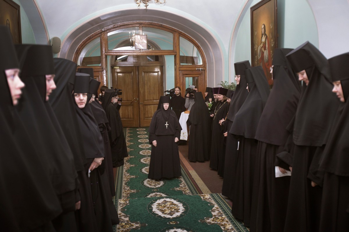 В тиши собора Двенадцати Апостолов, где в 1992 году монахиня Серафима была возведена в сан игумении и Патриарх Московский и всея Руси Алексий II вручил ей игуменский посох, мы разговариваем с одной из старейших насельниц - монахиней Херувимой (Гребеньковой). Матушка Херувима рассказывает, что их настоятельница прошла настоящую школу подвижничества, научилась глубоко вникать во все дела и проблемы, не останавливаться на полпути еще в те годы, когда выполняла ответственное послушание сначала в Митрополичьих, затем в Патриарших покоях у покойного Святейшего Патриарха Алексия II. Та школа дала такую сильную подготовку, что ее не испугал, не поверг в панику колоссальный объем восстановительных работ в почти разрушенной и оскверненной обители.