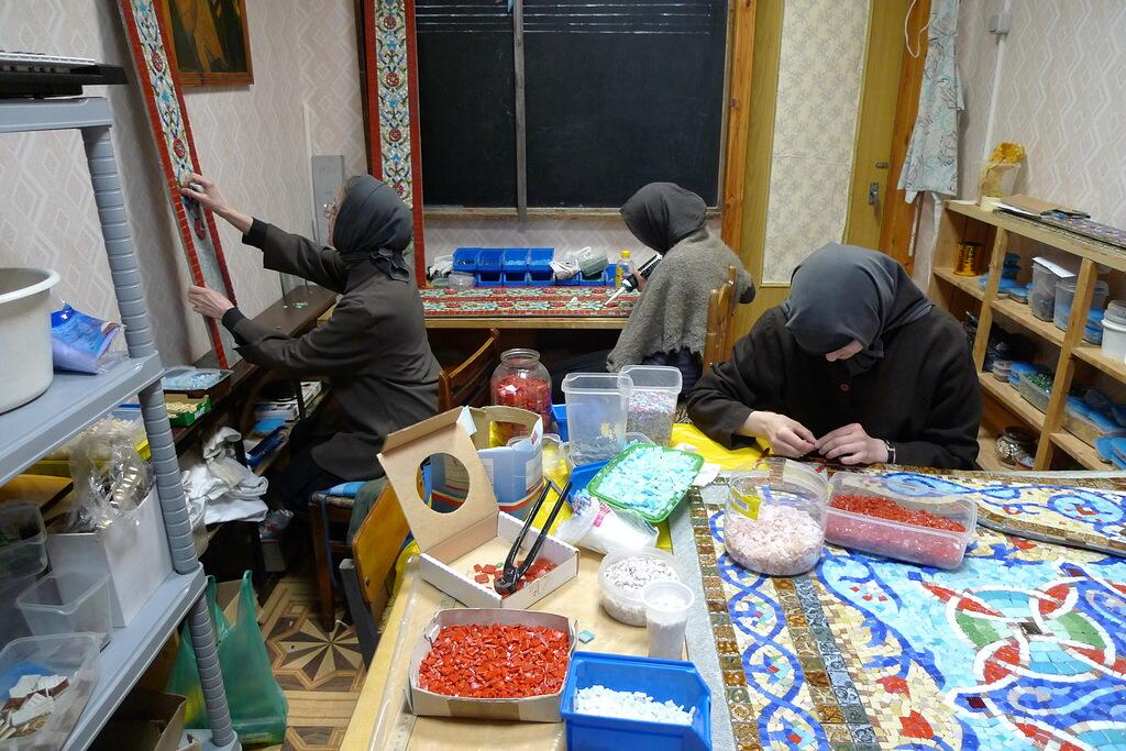 В 2008 и 2010 годах несколько сестер с отличием закончили обучение в Талдомском колледже декоративно-прикладного искусства и народных промыслов, где обучались рисунку, живописи и композиции, осваивали технику акварели. Неоднократно работы сестер монастыря выставлялись в Талдомском музее и колледже (ныне училище) ДПИ и НП. В качестве дипломных работ было решено начать создание декоративного оформления деревянно-керамического иконостаса в храме Божией Матери «Утоли моя печали» и мозаично-керамического иконостаса для домового храма святых мучениц Веры, Надежды, Любови и Софии.