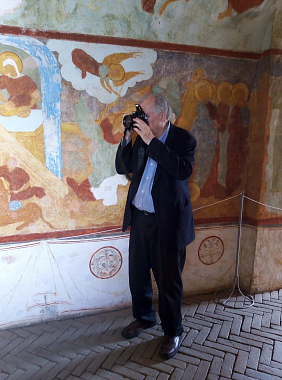 В Ростов американский фотограф впервые приехал летом 1987 года, в 1990-х годах не раз возвращался сюда, много и плодотворно работал с ростовскими памятниками. Последнее посещение нашего города, совершенное проездом, относится к 2012 году. И вот – новый визит. За четыре дня, с 5 по 8 июля 2019 года профессор У. Брумфилд побывал в Успенском соборе и Ростовском кремле, Спасо-Яковлевском, Борисоглебском, Богоявленском Авраамиевом и Троице-Сергиевом Варницком монастырях, в храмах: Вознесенском, Толгском, Никольском, в церкви Иоанна Богослова на реке Ишне.
