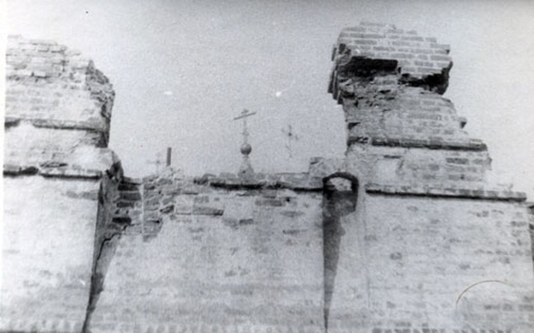 В это время доламывали все, что не успели сломать прежние хозяева. Часы с колокольни сняли и увезли, часовые колокола сняли и покололи прямо на месте. Очень хорошо помню, как увозили обломки этих колоколов. Их грузили на подводы, солнце освещало сколы, и блестели серебряные крупинки. Во время погрузки где-то на колокольне был найден запрестольный, видимо, золотой, крест. Нашедший показывал его своим товарищам, крест блестел золотом на солнце.