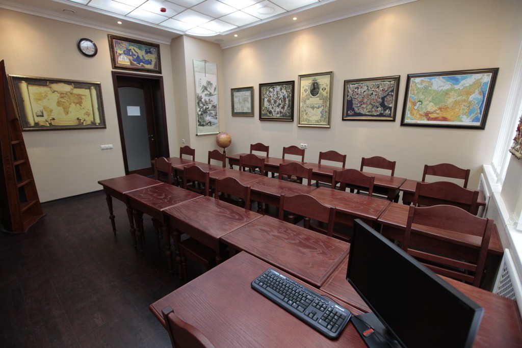 Аудиторию украшает русская иконография Ангелов кисти преподобного Андрея Рублева. А в углу аудитории — облицованная изразцами печь (стилизованная, конечно, но очень уютная).
