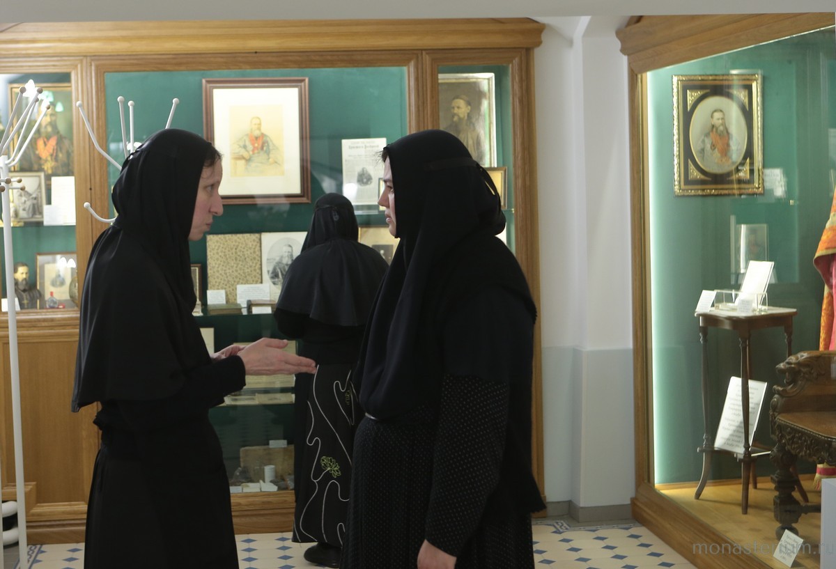 «В 2008 году монастырю было передано кресло святого Иоанна Кронштадтского, однако мы никуда не могли его выставить. Не было помещения для этого, – начала свой рассказ монахиня Фаина (Ивлева). – Были также редкие портреты Батюшки и дореволюционные книги, ему посвященные. Хотелось показать людям эти святыни». Один примечательный момент: в монастыре не афишировали свою задумку, касающуюся расширенной экспозиции. По словам монахини Фаины, знали об этом только матушка-настоятельница с сестрами и – святой праведный Иоанн... Но именно с того времени, когда матушка Людмила высказала свое предложение, сюда стали приносить предметы, связанные с Кронштадским пастырем и обителью на Карповке, в чем сестры увидели явное благословение Батюшки на устройство музея, который вызывает большой интерес у прихожан и паломников разного возраста. Много подростков бывает здесь – воспитанников воскресных школ при храмах, в том числе из Кронштадта, куда при жизни пастыря на его богослужения съезжалась чуть ли не вся Россия и ежедневно присутствовало до пяти-шести тысяч верующих, а также поступали тысячи писем и телеграмм, даже из-за рубежа, с просьбой помолиться и помочь. Приходят сюда и небольшие группы монашествующих из других монастырей – по два-три человека. Предложив расширить экспозицию в храме, матушка Людмила пояснила, что выставка должна быть доступной для всех.