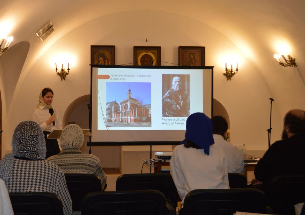 Неожиданным и очень светлым моментом конференции стало выступление учительницы школы села Марково Владимирской области, руководителя школьного научного общества «Искатели» Т.В. Мальчуговой и ее воспитанников, семиклассников и девятиклассников Марковской школы. Несколько лет назад поиски монахини Тавифы и инокини Софронии (Адваховой) привели их к свекрови Татьяны Владимировны, у которой хранились личные вещи инокини Ивановской обители Агриппины (Брызгаловой), служившей регентом Успенской церкви в Петушках. В доме мамы свекрови мать Агриппина провела последние годы жизни, сами же Петушки, место последнего служения и упокоения святителя Афанасия (Сахарова), с 1930-х годов являлись приютом для монахинь из разных закрытых монастырей. Сестры заинтересовали учительницу и детей историей Иоанно-Предтеченской обители, и, проведя собственные исследования, ребята подготовили доклад об инокине Агриппине, подружились с монастырем и уже не первый раз его посещают, недавно сделали коллективную работу о старице Досифее.