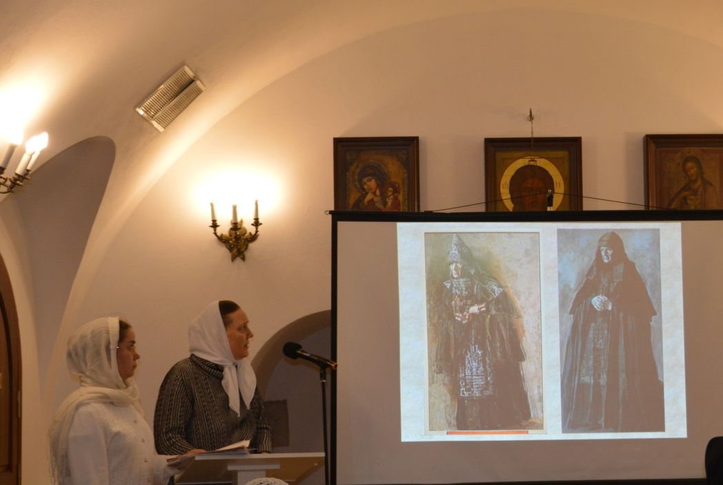 Кандидат филологических наук, старший преподаватель кафедры немецкого языка и литературы факультета иностранных языков МГУ им. М.В. Ломоносова М.Д. Смирнова и М.Н. Тимощук, старший преподаватель кафедры германской филологии РГГУ – представительницы священнических родов Смирновых и Крыловых вместе выступили с рассказом о монашеском подвиге сестер Крыловых – схимонахини Серафимы и схимонахини Марии. Насельницы Вознесенского монастыря в Кремле, утратив в 1918 году свою обитель, пришли в Ивановский монастырь в самом начале его разорения. Имея возможность выбрать иное, более спокойное на тот момент пристанище у старшего брата, служившего в храме Иоакима и Анны на Якиманке, они тем не менее решили продолжать монашеское делание, сколько возможно, пусть в оскверненных, но монастырских стенах. Это их, сестер Крыловых, хранительниц святынь «Руси уходящей», писал для своего неоконченного полотна Павел Корин. Невероятные пересечения судеб многих поколений московского духовенства, верующих мирян, всех тех, кто сумел в «окаянные дни» и годы сохранить верность Христу, невозможно изложить в статье о столь обширной по содержанию конференции. На сайте «Монастырский вестник» в 2019 году была опубликована статья «“Русь уходящая” возвращается. Она жива!», отсылаем к ней всех заинтересованных читателей.
