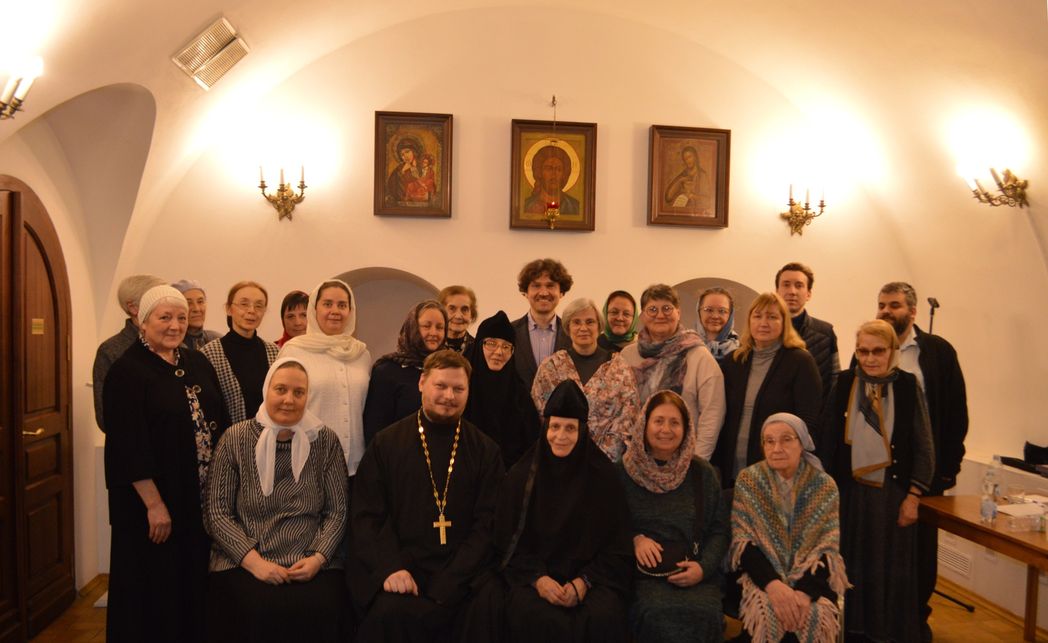 Д.Г. Давиденко, кандидат исторических наук, историк-архивист обители поделился найденной информацией о том, как монастырь существовал в военные предреволюционные годы, как происходили его закрытие, передача в ведение отдела принудительных работ НКВД, изъятие церковных ценностей. Есть подтверждение, что с 1919 (или даже 1918) года в стенах монастыря был устроен Ивановский концентрационный лагерь особого назначения, который к 1924 году был обращен в Московский Исправтруддом с «переходным исправительно-трудовым отделением». Все это время, в течение примерно десяти лет в монастыре продолжала жить община сестер. Сначала их было более двухсот, затем число уменьшалось, но еще в 1926 году насельниц было больше ста. Пытаясь уйти из-под удара, сестры вкладывали новым хозяевам жизни мысль о «коммунистическом характере» монастырского труда, в частности, в швейной мастерской, где они работали. Это было странное сосуществование невест Христовых бок о бок с неблагонадежным «исправляющимся» контингентом, представители которого, бывало, обворовывали сестер, похищая остатки церковной утвари, уцелевшие после экспроприации… Пока не найдено точных свидетельств, как совершались богослужения, но известно, что насельницам были оставлены часовня и домовый храм; возможно, иногда службы проходили и в соборе. До сих пор непонятно даже, как была разделена территория монастыря. Этот вопрос вызвал оживленное обсуждение, в которое включилась почетный реставратор Москвы Лидия Алексеевна Шитова, много потрудившаяся для второго возрождения обители. Из ее комментария и замечаний Дмитрия Григорьевича было понятно, что третий том документов еще далеко не закрывает все «белые пятна» даже в такой, казалось бы, близкой к нам истории.