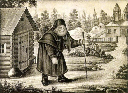 «С первого взгляда на него обняло меня благоговейное к нему чувство. Он показался мне ангелом, жителем небесным: лицо белое, как ярый воск, потому что переменная атмосфера и солнечный луч не могли действовать на него. Глаза небесного цвета, волосы белые спускались до плеч. Судя по формам тела, безошибочно можно сказать, что он прежде имел большую физическую силу; теперь кротость и смирение начертаны на лице его, однако же он не был худощавый, напротив, даже полный, несмотря на то, что пища его дневная состояла из одной просфоры, присылаемой ему из церкви», ‒ так выразил свои впечатления генерал Яков Осипович Отрощенко.