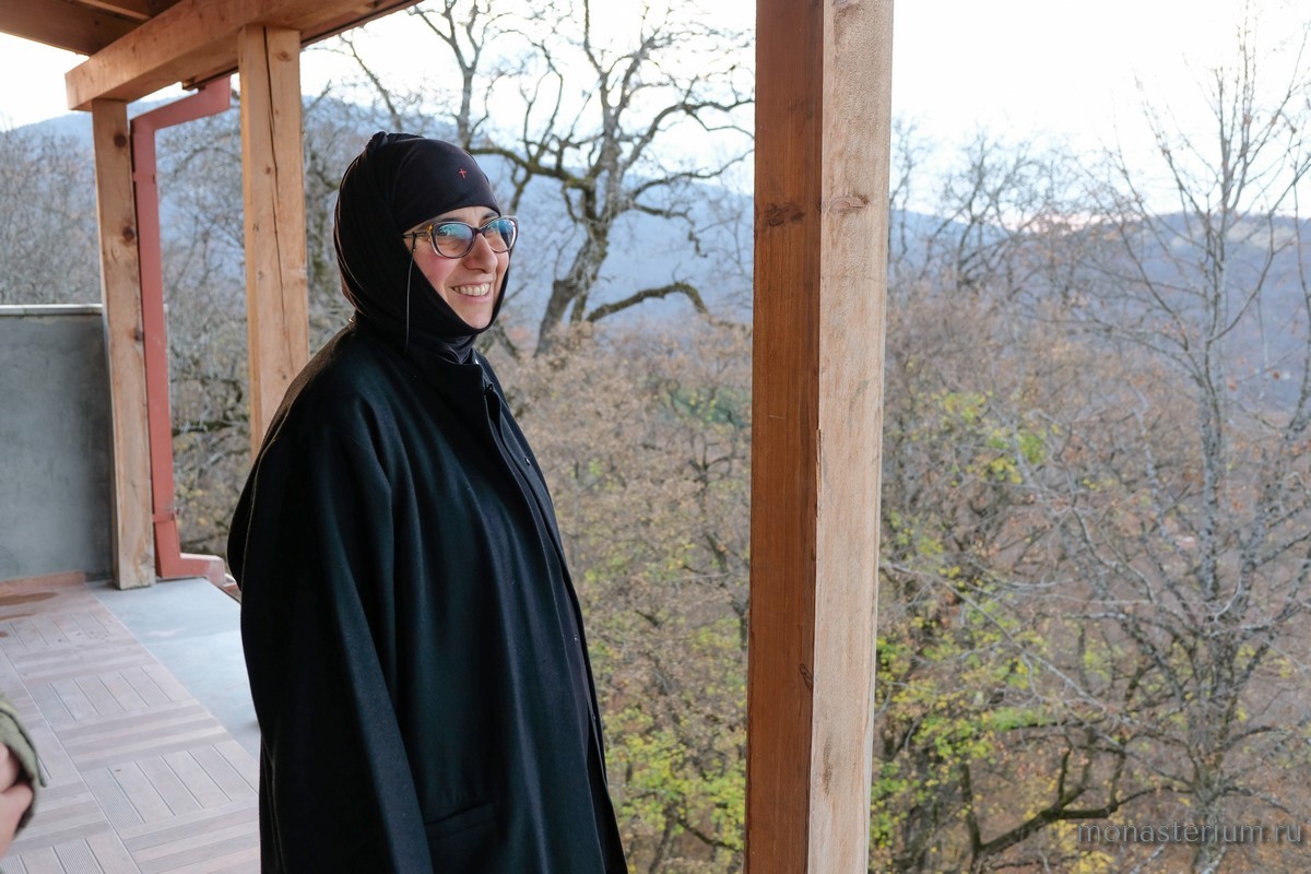 Интересна предистория поездки в страну, где православие закреплено в Конституции как государственная религия. В 90-е годы прошлого века Грузию стали посещать афонские отцы. Как-то приехал настоятель Ксиропотамского Афонского монастыря отец Иосиф с братией, и, увидев бедственное положение во всех сферах (политической, экономической, духовной), святогорцы стали спрашивать, чем они могут помочь братьям и сестрам во Христе. Проблем, конечно, было в избытке, вплоть до того, что монашествующие просто-напросто замерзали в стенах монастыря, однако никто не уходил. Все же владыка Давид (Махарадзе) решил, что самой существенной помощью в данной ситуации может стать содействие гостей в том, чтобы его духовные чада, жаждущие монашества, смогли увидеть женский монастырь с непрерывавшейся монашеской традицией. Об этом Владыка и попросил афонитов. Просьба грузинского архипастыря вскоре была исполнена. Причем дивным образом его подопечные попали на остров Тасос в монастырь Архангела Михаила, являющийся женским подворьем Филофейского монастыря Святой Горы, в канун Пасхи. Вот как вспоминает матушка Иоанна некоторые моменты, заложившие прочный фундамент монашеской жизни в ее родном монастыре, где она подвизается с 1995 года: «Удивительно, как действует Промысл Божий: мы туда приехали, не зная ни одного греческого слова. Общались с сестрами с помощью английского языка, потому что среди них были гречанки, жившие прежде в Америке, и прекрасно говорившие на английском. Так продолжалось целый месяц. А потом матушка-схиигумения Ефремия сказала, что должен приехать духовник, отец Ефрем, и что тогда? Он не поймет, что мы хотим ему сказать, мы не поймем его ответы и духовные наставления. Словом, надо учить греческий. Матушка благословила своих сестер больше не говорить с нами на английском языке. После чего появилось ощущение, будто нас бросили в воду и надо было во что бы то ни стало выплыть. Конечно, нелегко нам тогда пришлось. Мы даже пытались объясняться с помощью жестикуляции, но матушкино благословение – учить греческий, общаться только на нем – привело к тому, что когда прибыл старец Ефрем, то мы, прожившие в монастыре два месяца, уже могли с ним объясниться на его родном языке».