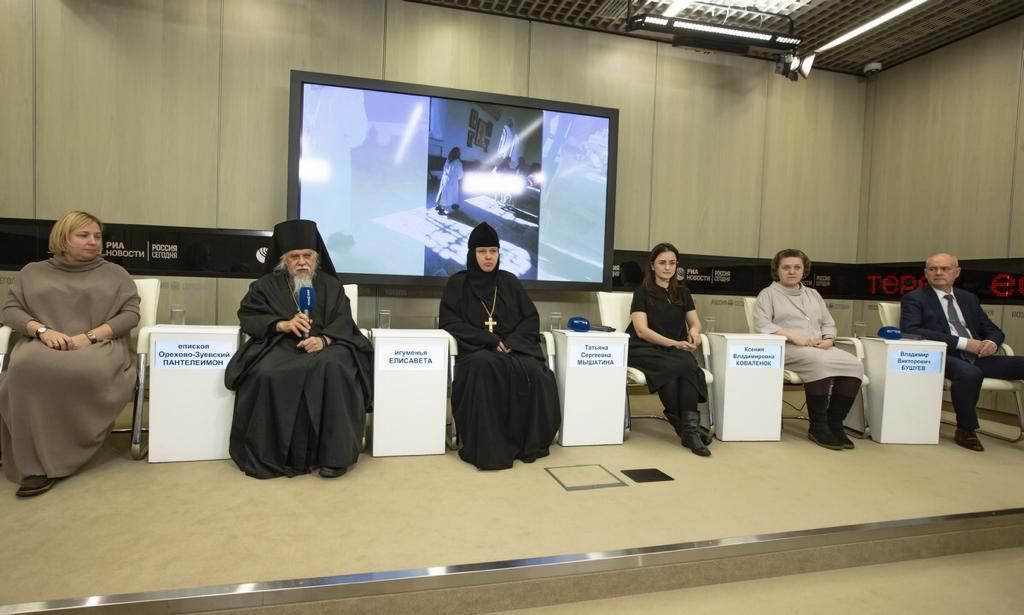 На днях в пресс-центре МИА «Россия сегодня» в рамках проекта «Религия и мировоззрение» прошла мультимедийная пресс-конференция, посвященная 110-летию основания Марфо-Мариинской обители милосердия. В ней приняли участие: викарий Патриарха Московского и всея Руси, председатель Синодального отдела по церковной благотворительности и социальному служению епископ Орехово-Зуевский Пантелеимон, директор Фонда Андрея Первозванного Владимир Бушуев, настоятельница Марфо-Мариинской обители милосердия игумения Елисавета (Позднякова), главный врач Марфо-Мариинского медицинского центра «Милосердие» Ксения Коваленок, директор развивающего центра для детей с ДЦП «Елизаветинский сад» Татьяна Мышатина, руководитель Группы работы с просителями в Марфо-Мариинской обители Виктория Стронина.